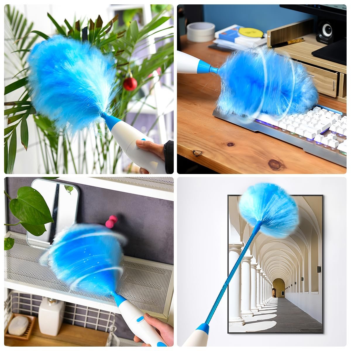 MULTIPURPOSE: The electric duster can be used on any shape of furniture, making it ideal for a variety of cleaning purposes. It can be used as an office duster, fan blade cleaner or blind duster. In addition, it can be used to clean keyboards, computer cases, car seats and even delicate toys.