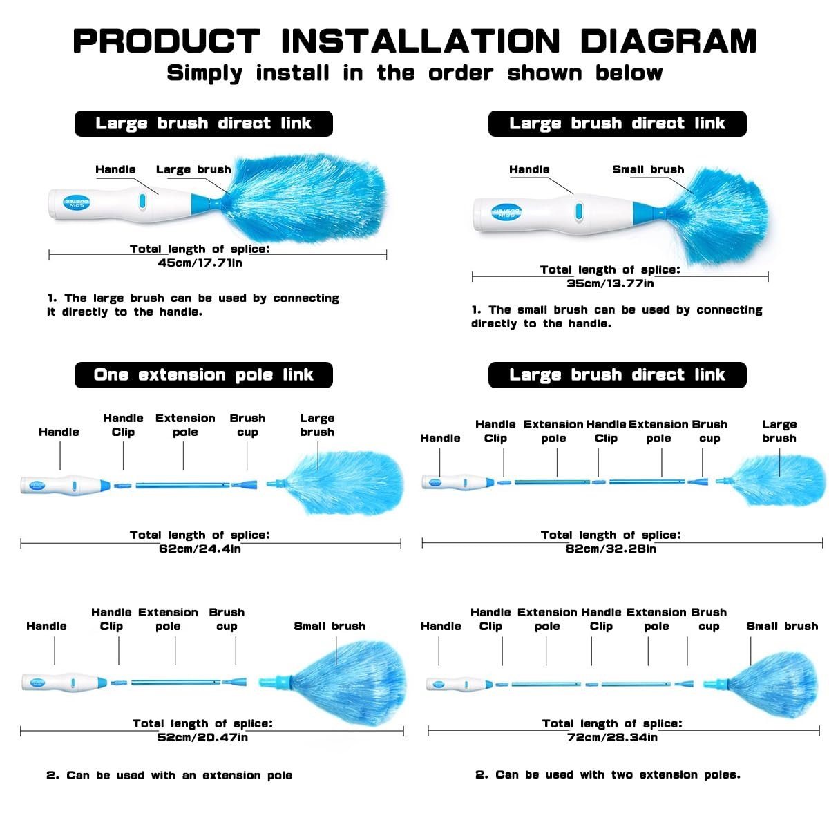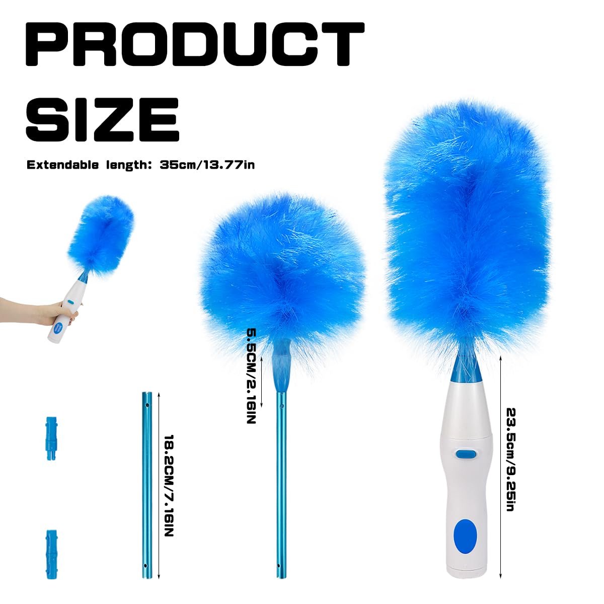 PREMIUM QUALITY: Our electric duster brush is made of high-quality materials that won't shed easily; its electrostatic design effectively attracts dust, making it ideal for cleaning ceiling fans, mini-blinds and removing pet hair; and it can be easily disassembled for convenient cleaning. With proper maintenance, these parts will maintain their efficiency and performance for a long time.